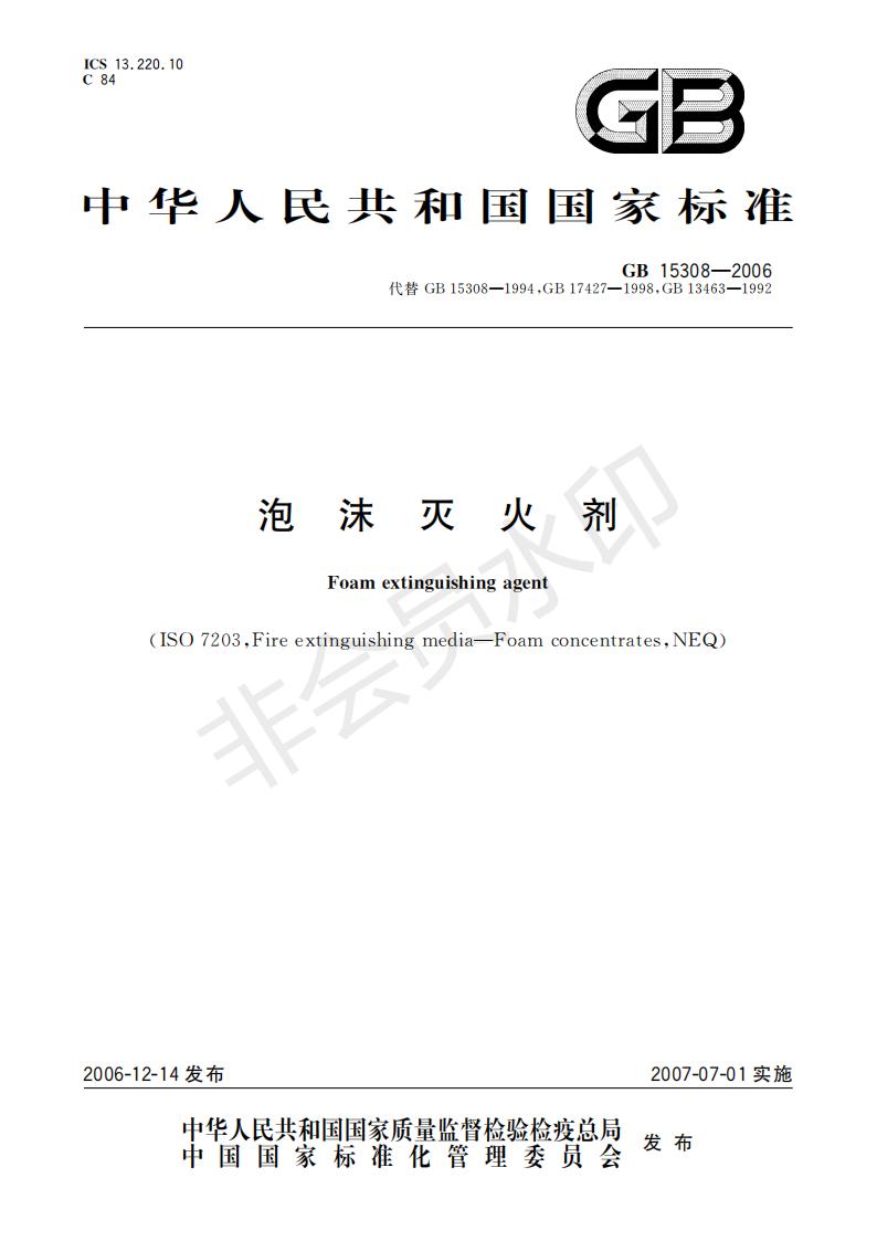 GB15308-2006 泡沫滅火劑