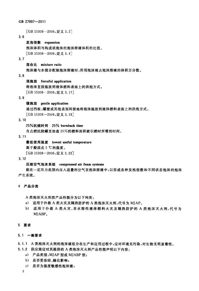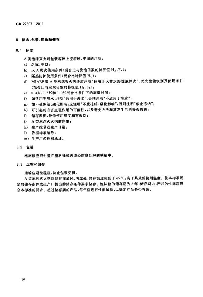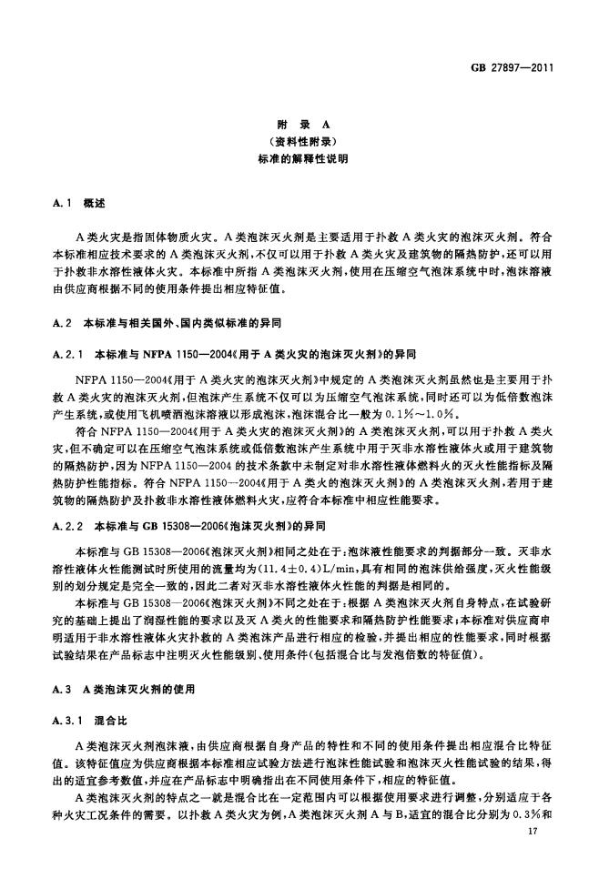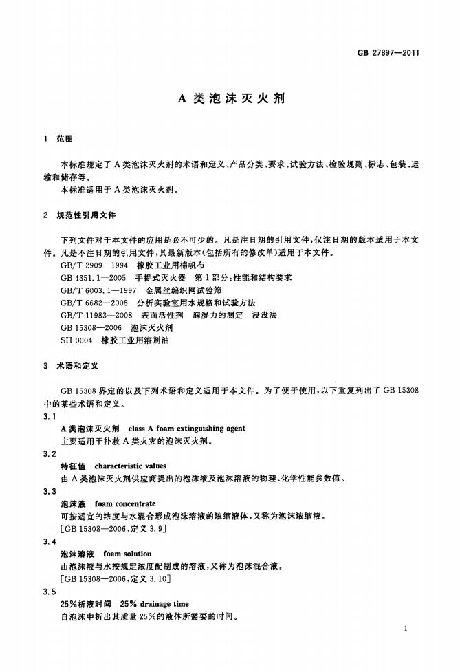 GB 27897-2011 A類泡沫滅火劑