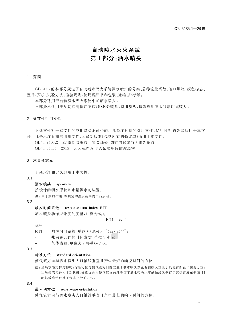 GB 5135.1-2019自動噴水滅火系統(tǒng)灑水噴頭檢測標(biāo)準(zhǔn)