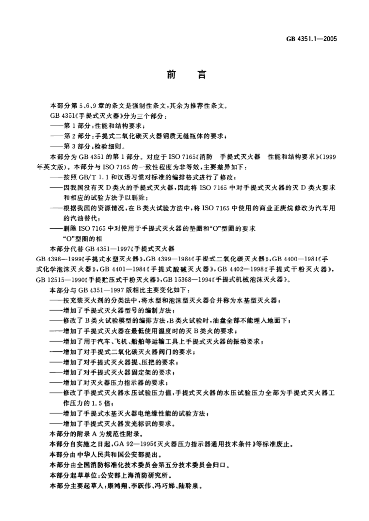 GB 4351.1-2005手提式滅火器第1部分性能和結構要求