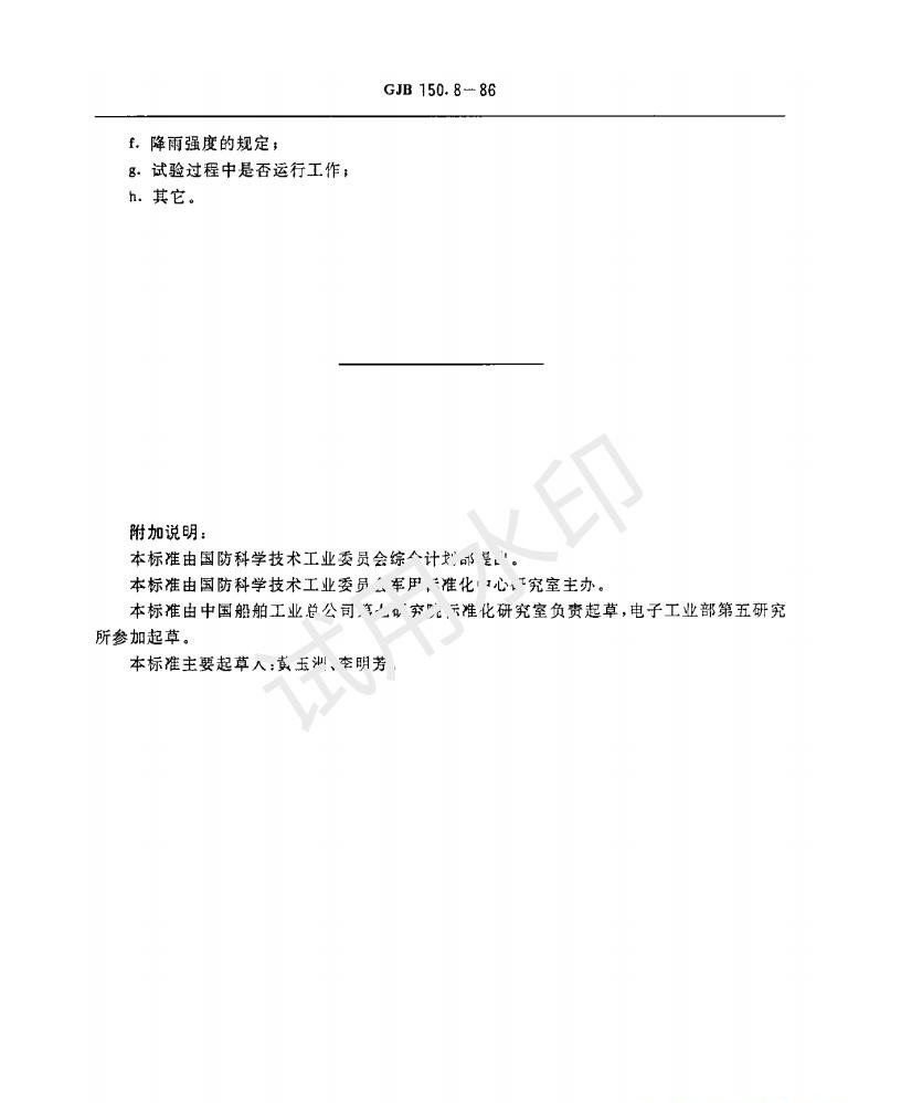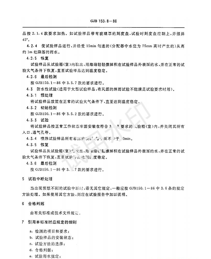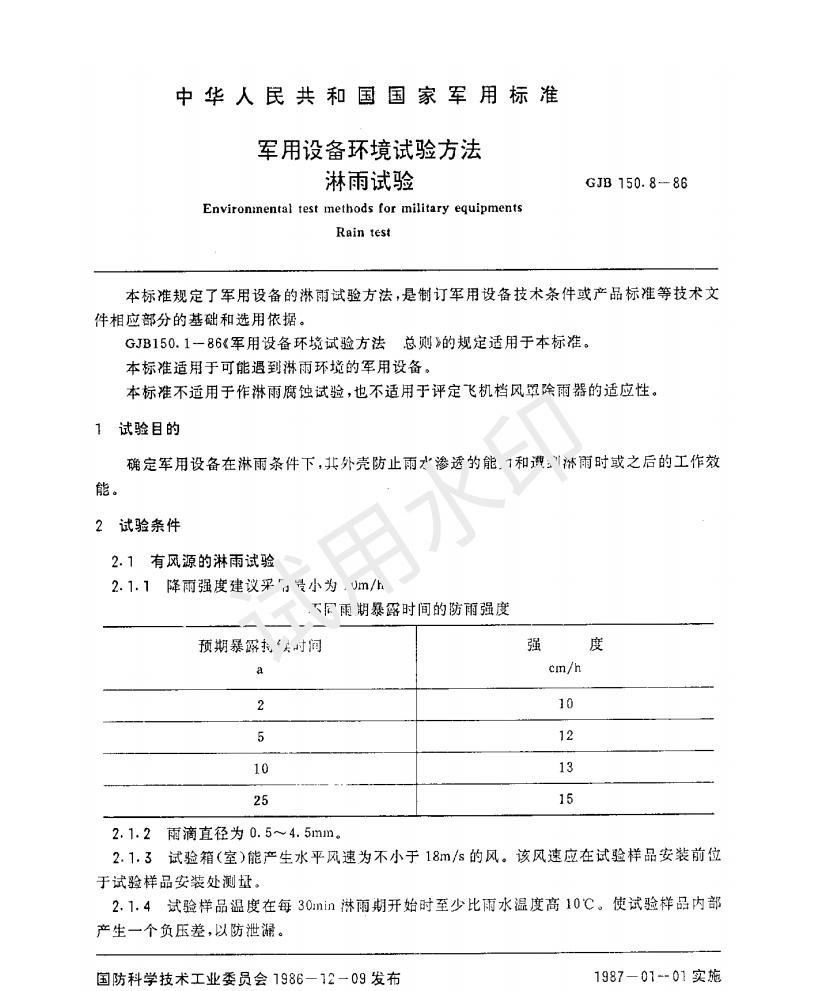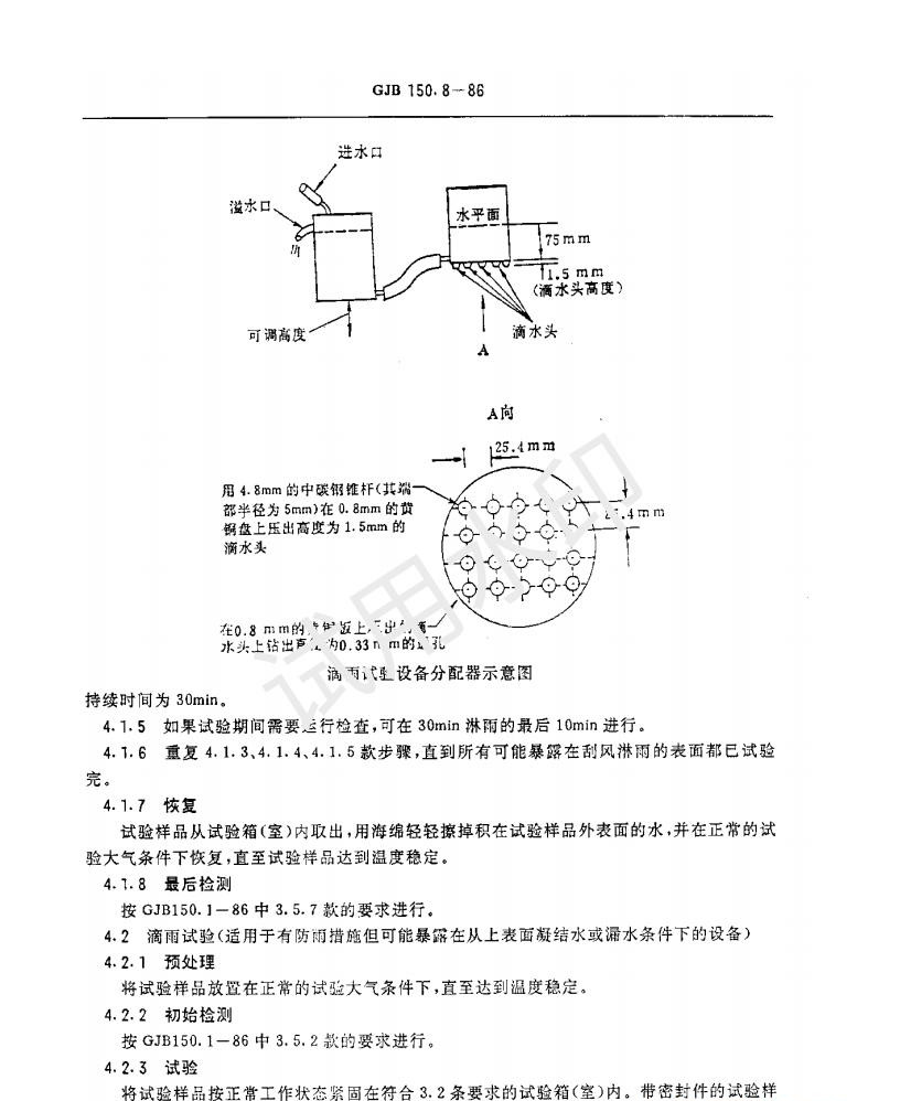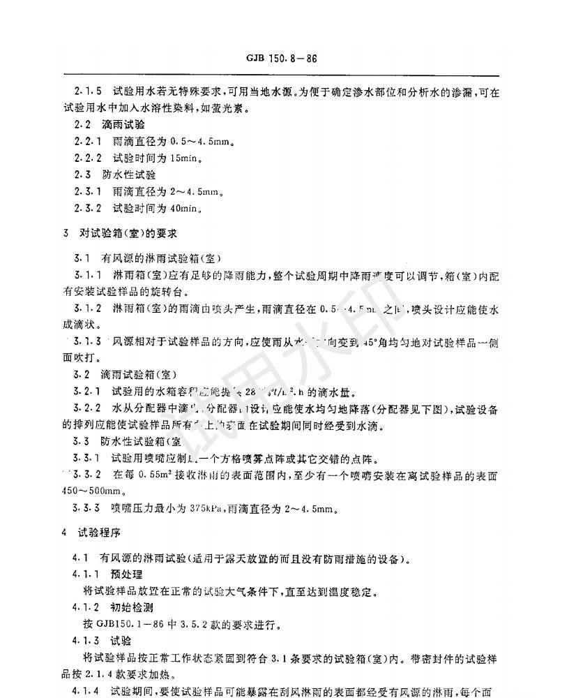 GJB150.8-1986 《軍用設備淋雨試驗方法》